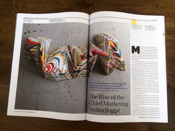 I wrote an article in collaboration with Laura McLellan, The Rise of the Chief Marketing Technologist, that was featured in the July-August 2014 issue of Harvard Business Review, part of their spotlight focus on “the new marketing organization.”