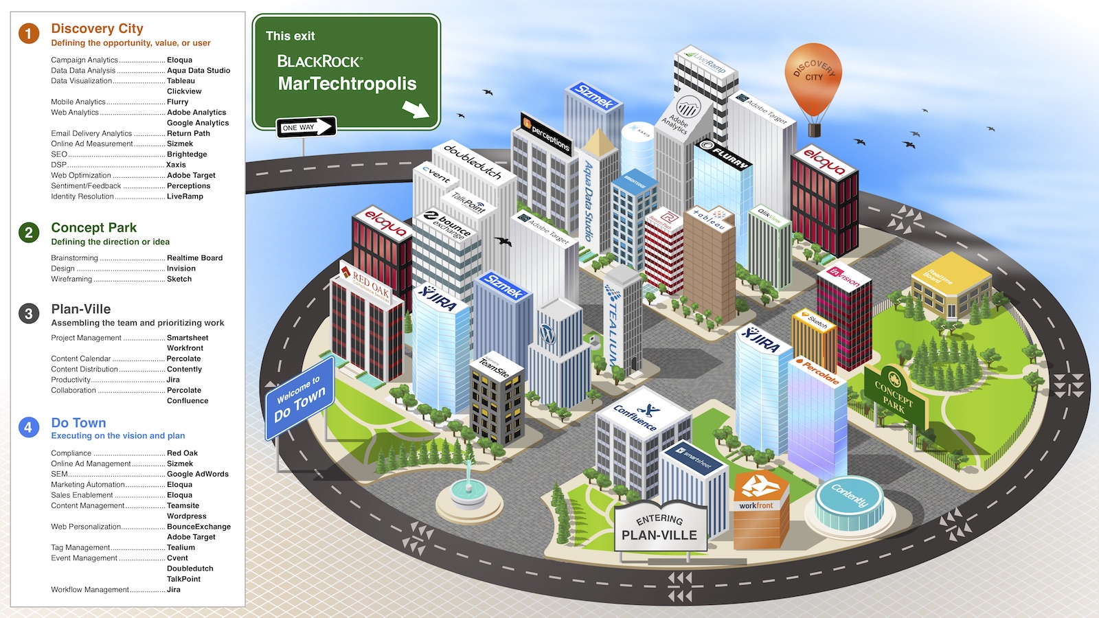 This is a spectacular illustration — the SimCity of Marketing Stacks — of “MarTechtropolis.” On visual production values alone, this slide by BlackRock is impressive.