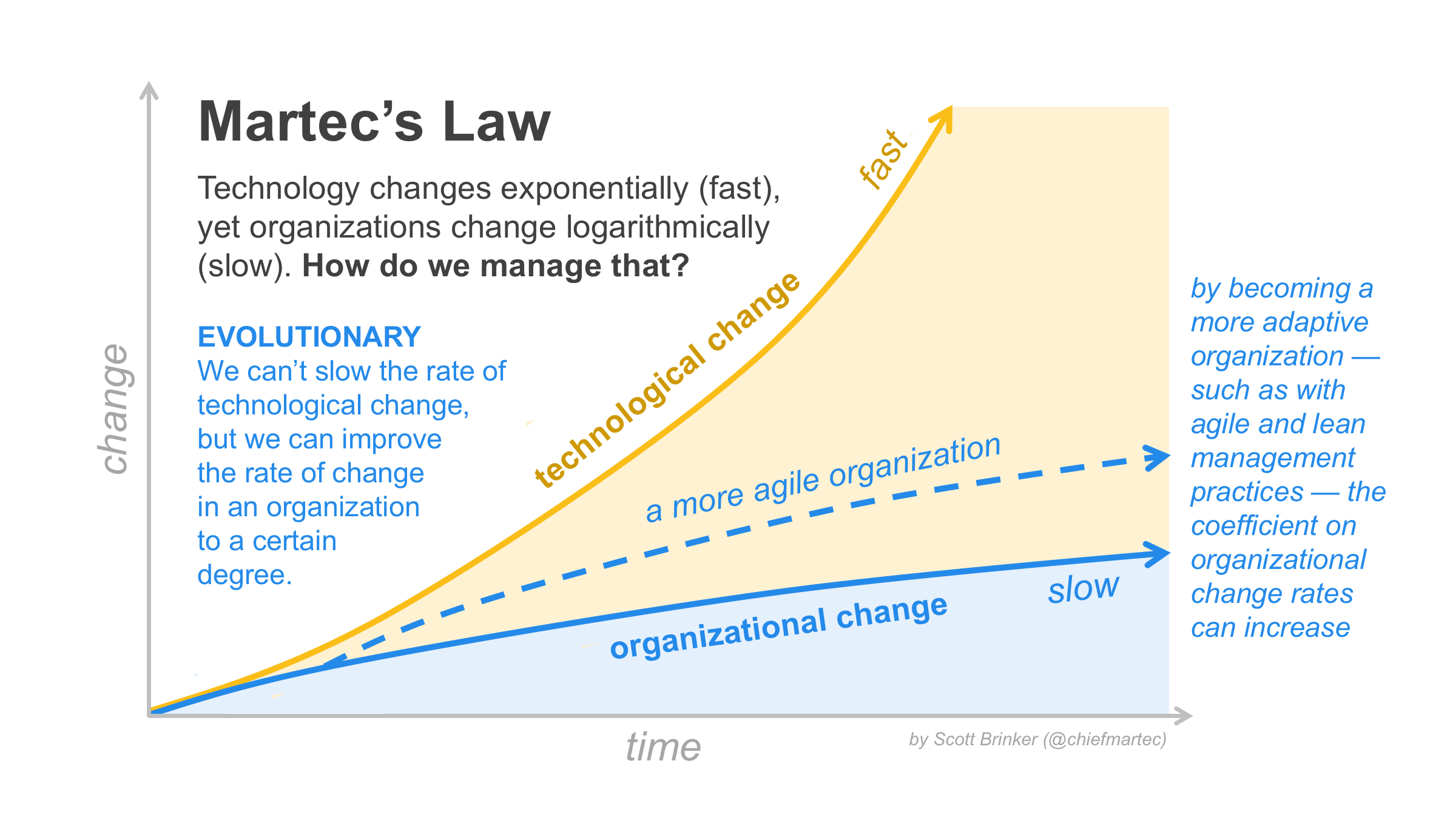 If there’s any “law” that I’m associated with though, it’s Martec’s Law: technology changes exponentially, organizations change logarithmically.