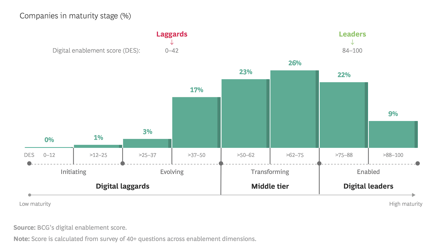 Not coincidentally, it also lines up with this research from Boston Consulting Group interviewing ~2,000 companies on the current state of their “digital transformation”: