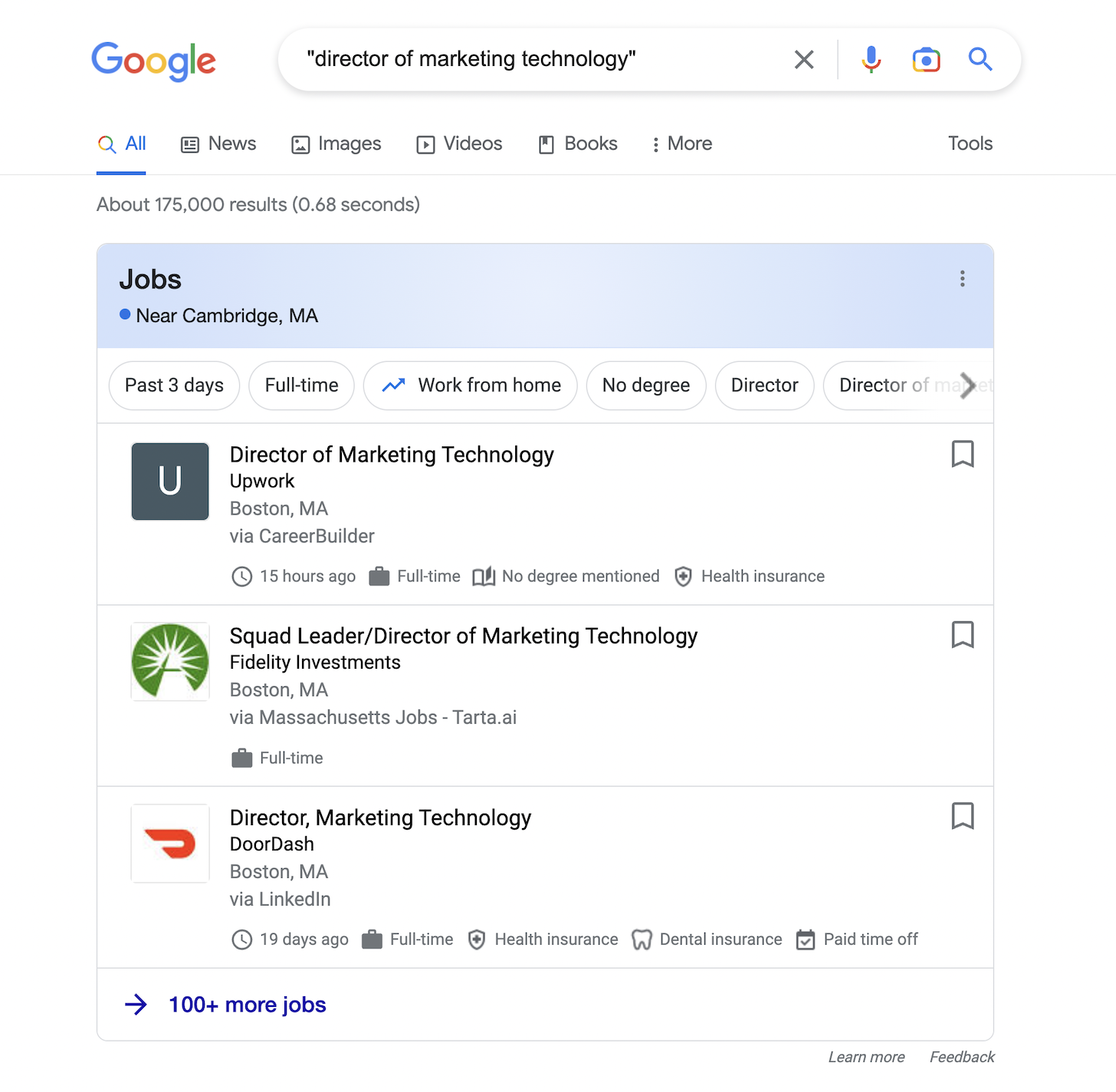 Today, that search generates 175,000 results, including a bunch of great job opportunities: