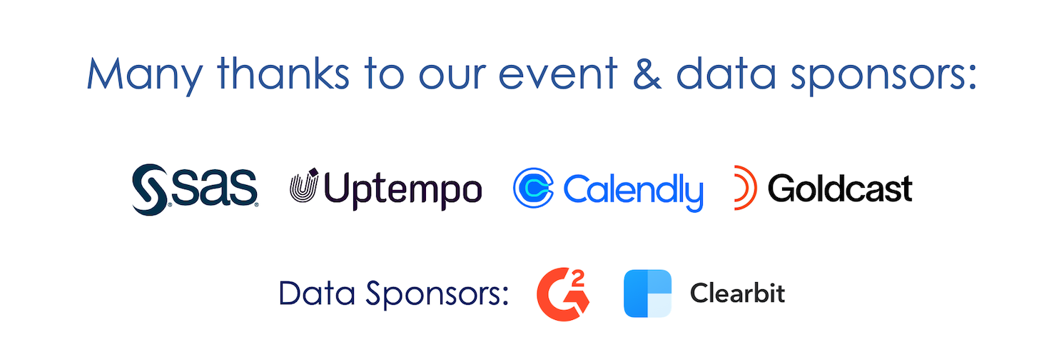 We want to thank again our sponsors SAS, Uptempo, Calendly, Goldcast, G2, and Clearbit. Their support has funded and enabled our research and made it possible for us to share the results with the martech community at no cost to you.