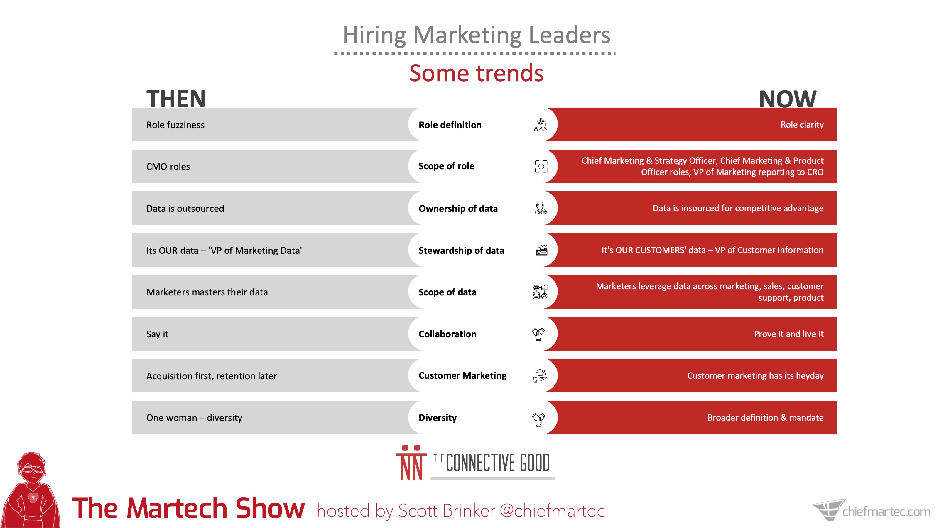 Erica kicked off the show by walking us through the evolving trends she’s been seeing in hiring marketing executives — see the table at the top of this post — as well as some of the trade-offs that companies need to consider when hiring the right CMO.